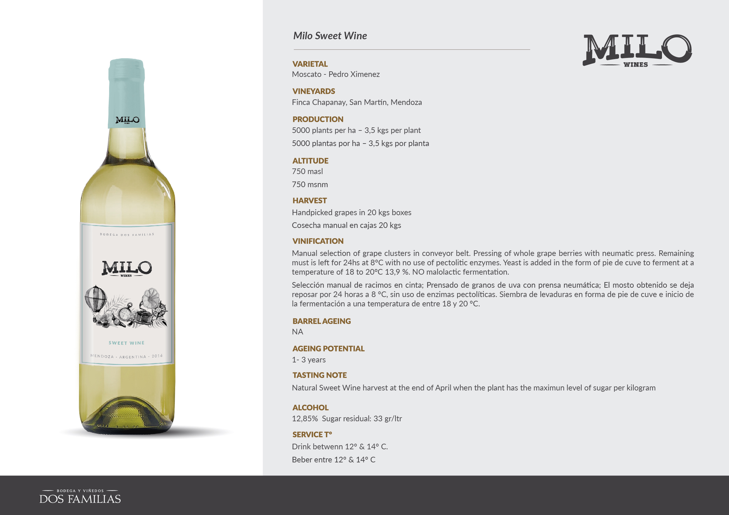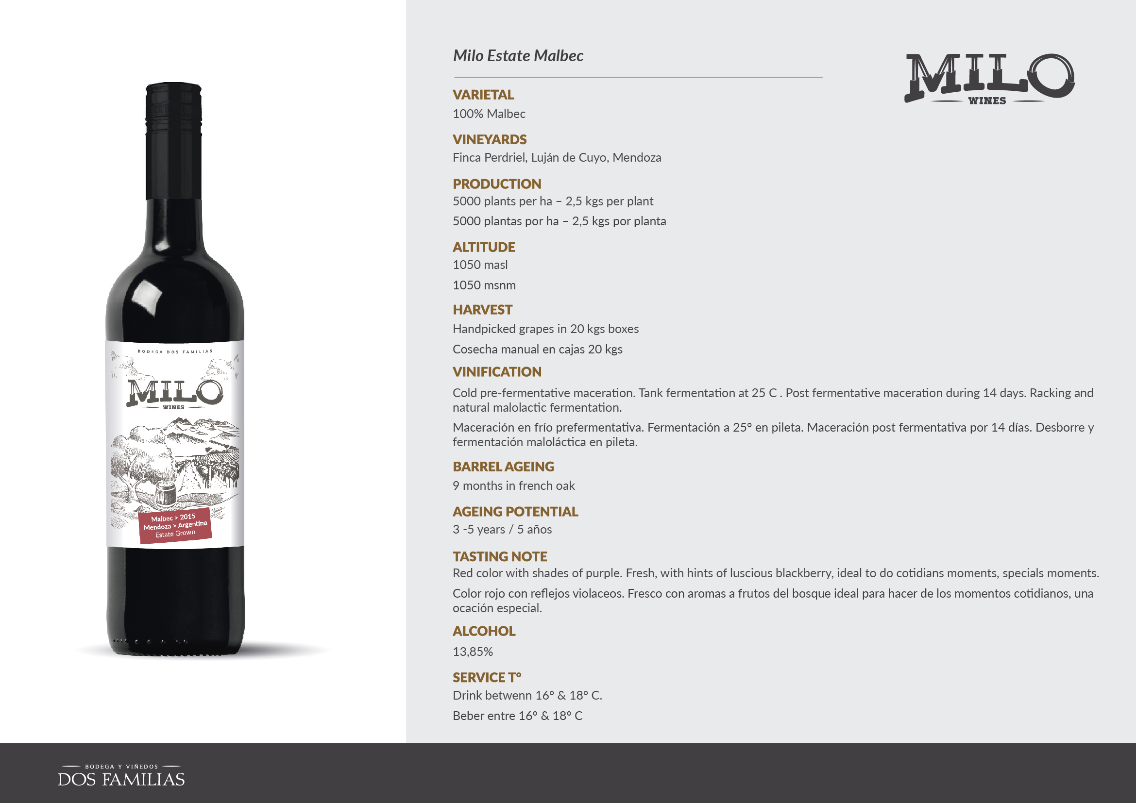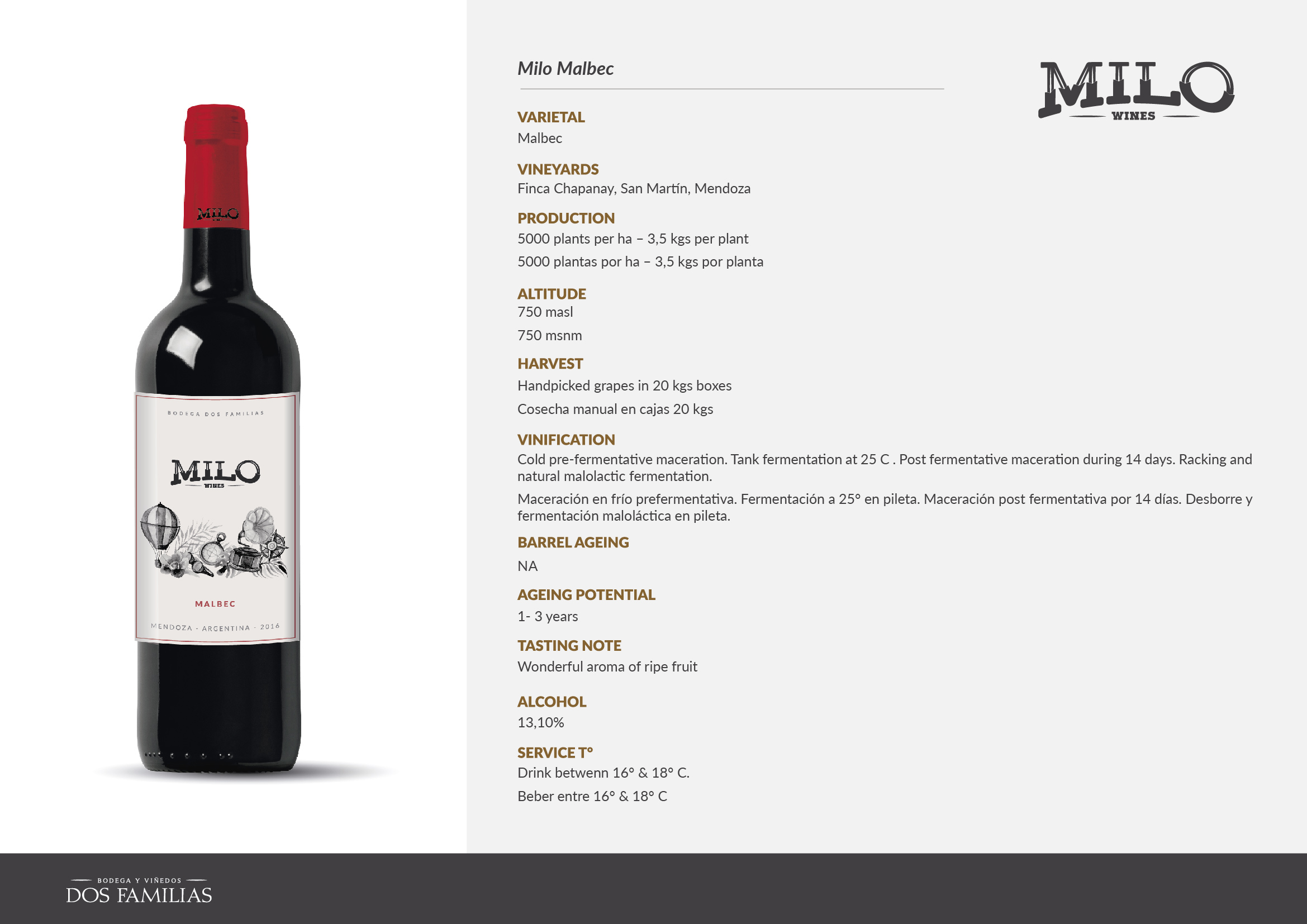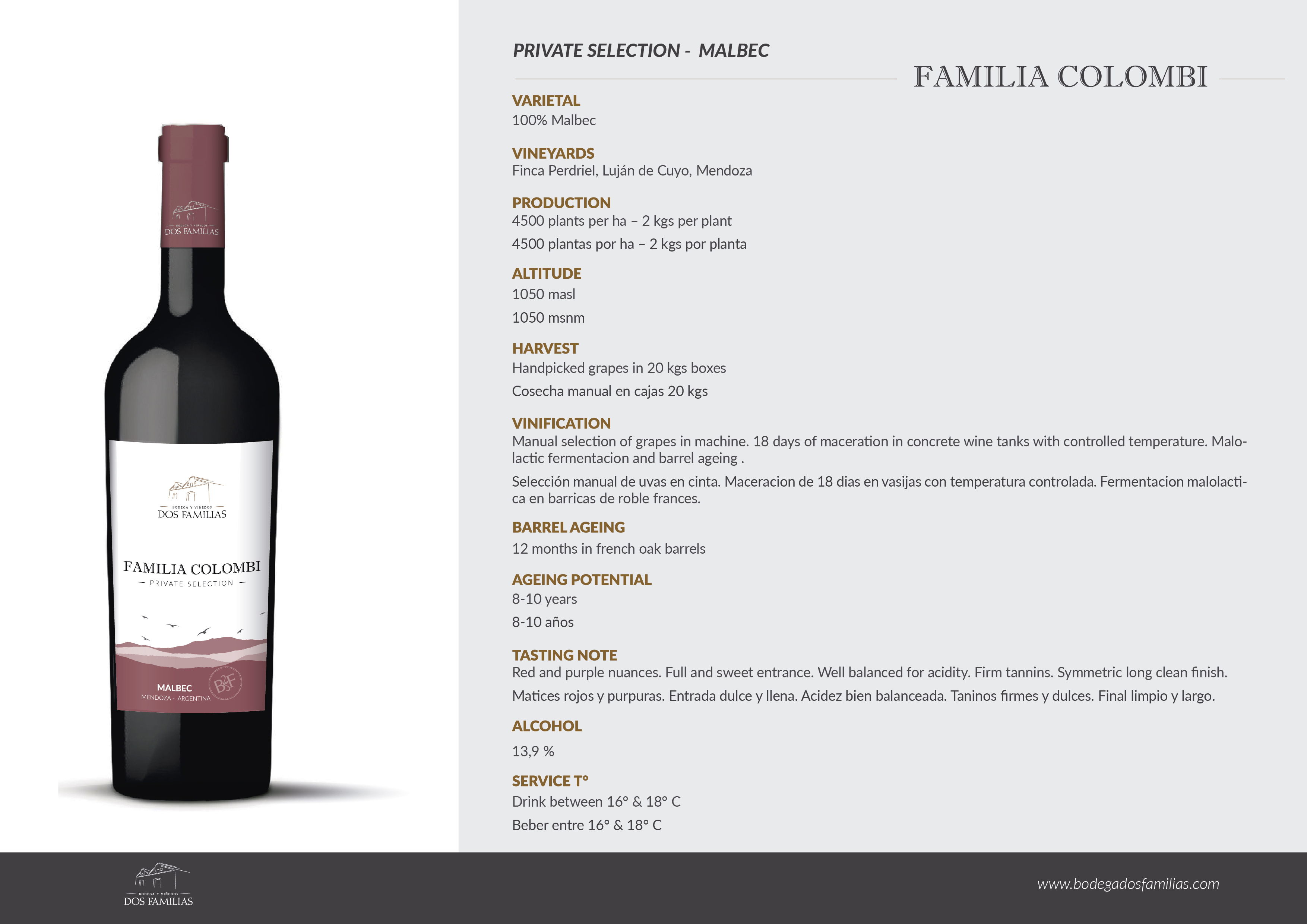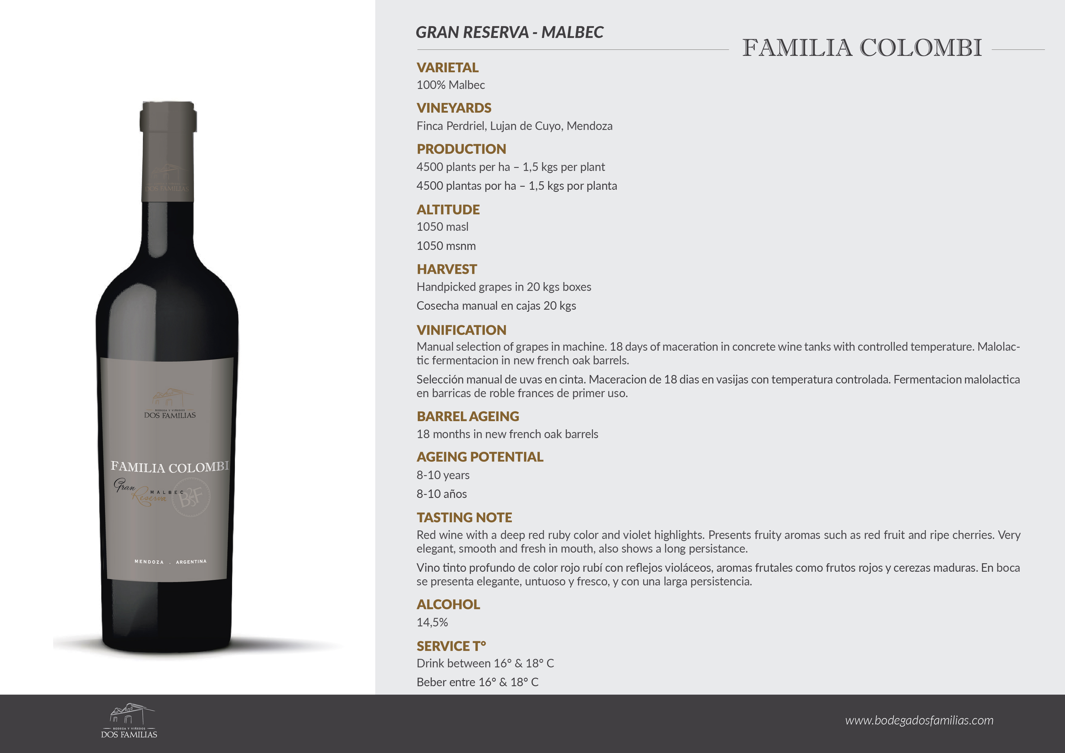 Un paraje ubicado en el departamento de Lujan de Cuyo, al pie de la cordillera de Los Andes, a 1.050 metros sobre el nivel del mar. Tiene un clima fresco y seco, lo que hace que la uva madure con leves tratamientos fitosanitarios. De “Finca Titi” es donde sacamos las uvas Malbec para nuestras líneas Balcón de los Andes, Familia Colombi Selección de Familia y Familia Colombi Gran Reserva.